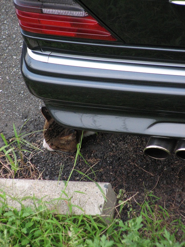 隣のトラ(仮名)がタイヤの下でくつろいでます。